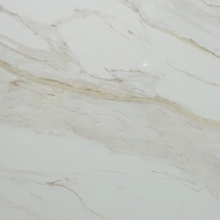 Oro Vecchio evokes the timeless elegance of aged marble, enriched with warm sophistication. A soft ivory background is accented by flowing golden and taupe veining, reminiscent of classic European stone yet elevated with modern precision. The subtle layering of color and movement creates a surface that feels both luxurious and versatile, pairing beautifully with a wide range of interior palettes.