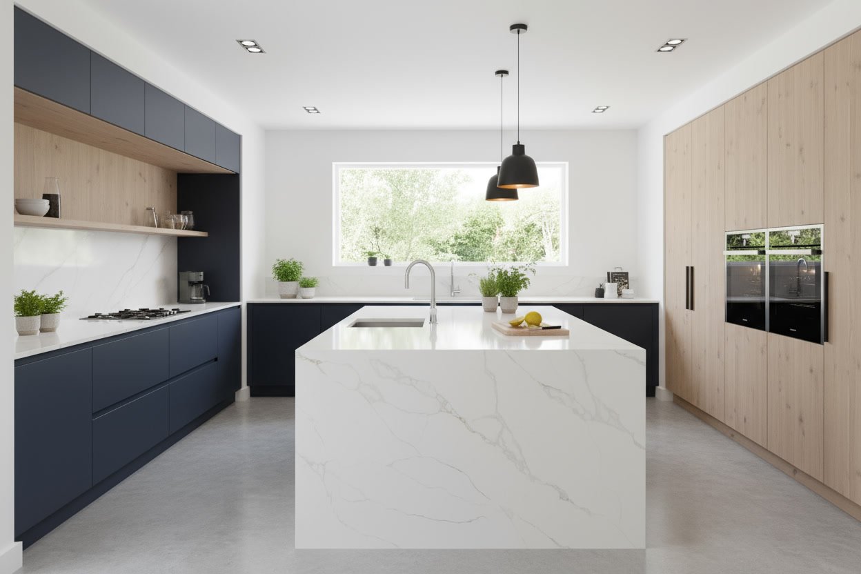 Statuario Diamond radiates pristine sophistication with its pure white base and soft, graceful veining that flows delicately across the surface. Subtle grey and faint gold accents bring dimension and warmth, reminiscent of the finest Italian marble. This surface captures a refined, high-end aesthetic—perfect for creating luxurious kitchen countertops, sweeping waterfall islands, or statement wall features that exude understated elegance. Available in a super jumbo format, it delivers seamless beauty and versatility for both residential and commercial design.